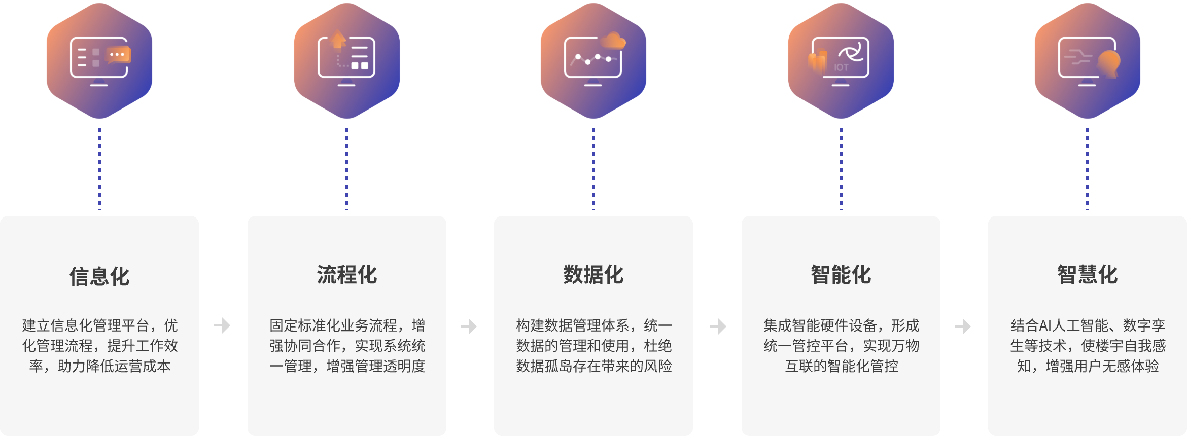 线上化、流程化、数据化、智能化、智慧化的建筑设施综合运维管理平台,设施管理企业能够通过平台的个性化配置实现各设施管理项目及站点的业务应用,通过APP应用端与WEB管理端的业务应用,以及通过数据管理报表、数据驾驶舱、管理驾驶舱,帮助管理层对于项目运维管理做出精准的决策,同时提升设施管理水准,降低运维成本。